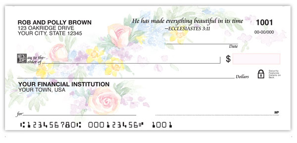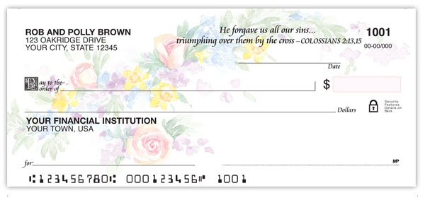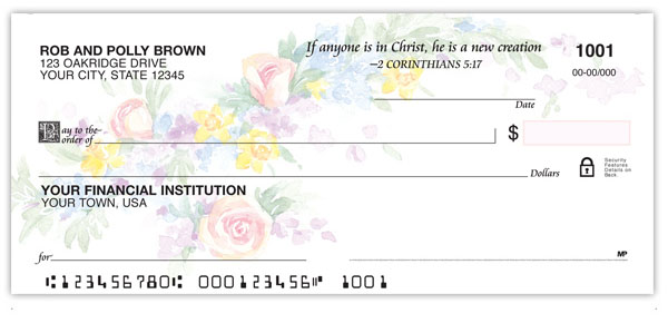 A delicate floral spray by watercolor artist Marian Hirsch graces this flower check series. Spread the good news with four rotating Scriptures that are sure to encourage others.