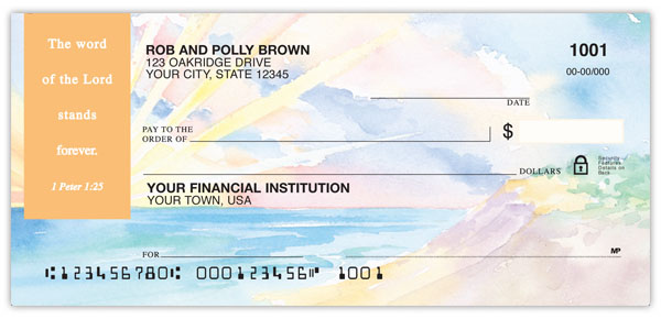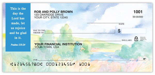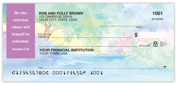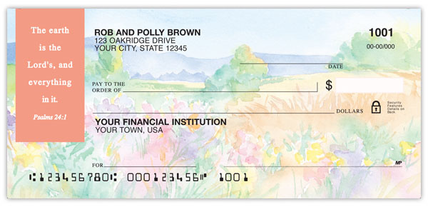 Order watercolor checks by Christian artist Marian Hirsch. From meadows to seashores....four lush scenes echo the beauty of God's creation.